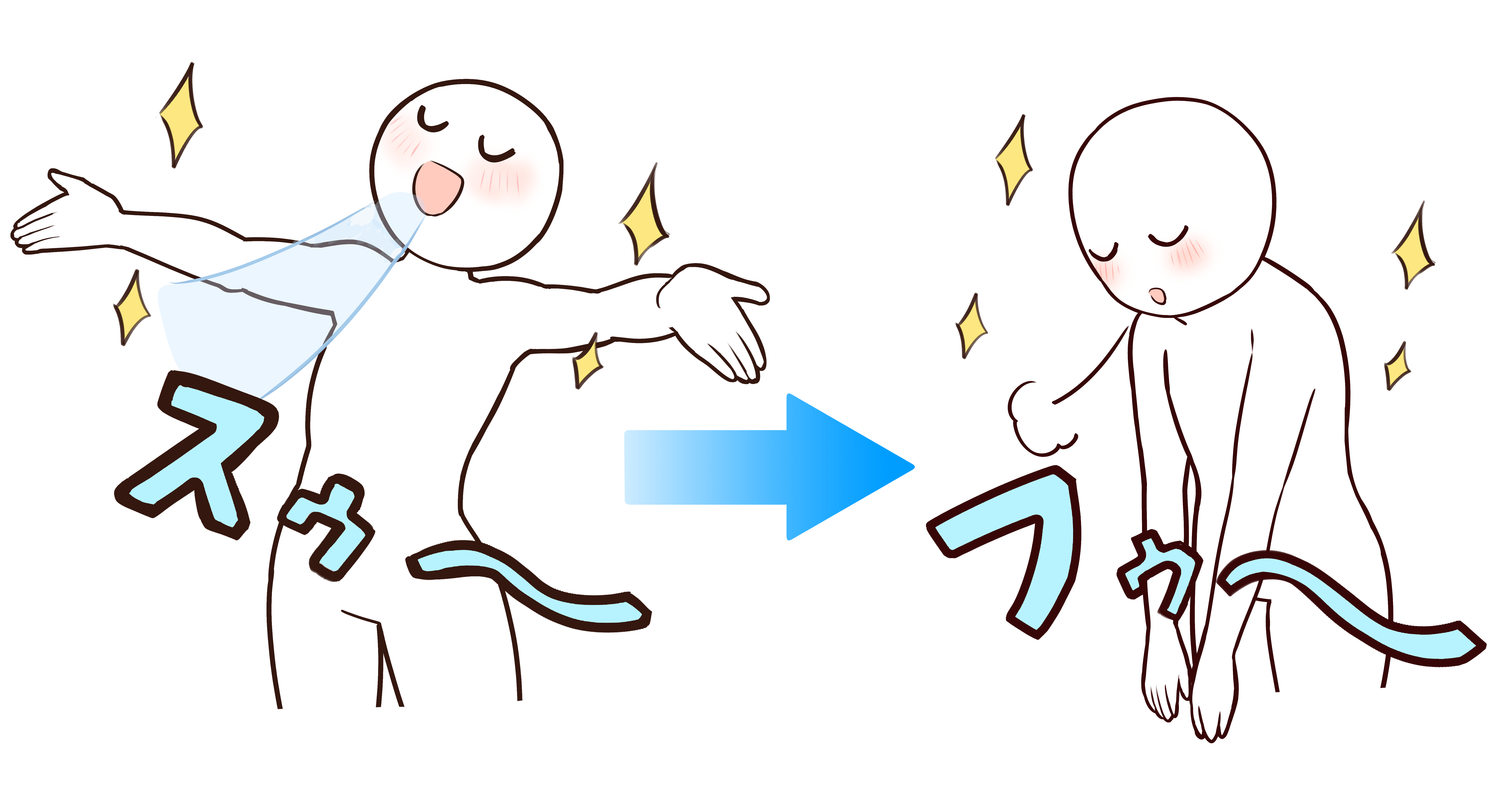 ゆっくり呼吸することで筋肉の緊張が緩みます。