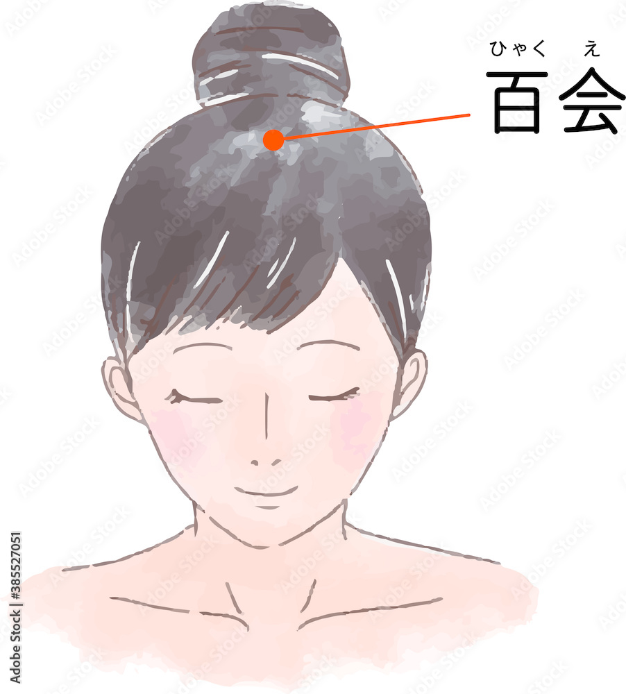 頭の真ん中にある「百会」は、高ぶった気を落ち着かせる万能のツボです。寝る前に、指の腹で心地よい強さでゆっくり押してみましょう。
